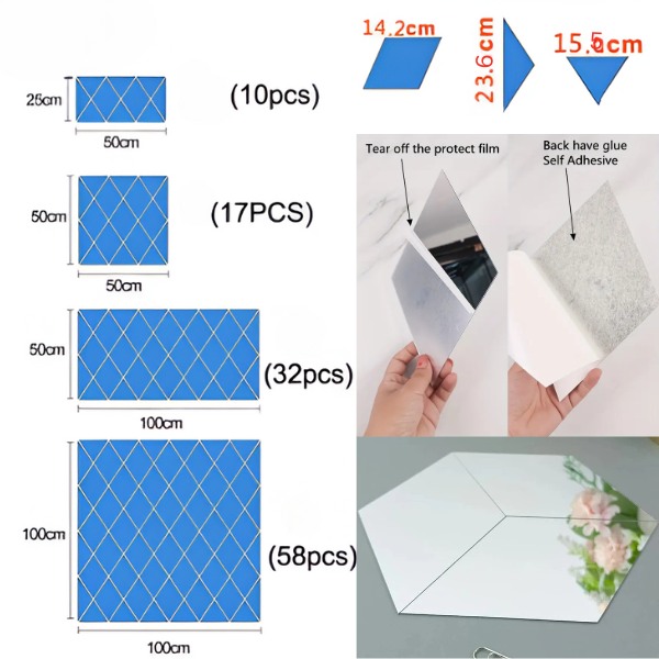 3x Spiegel Wandaufkleber (32 Stück) | WALLGEM