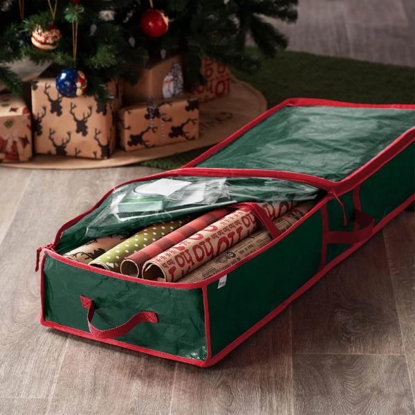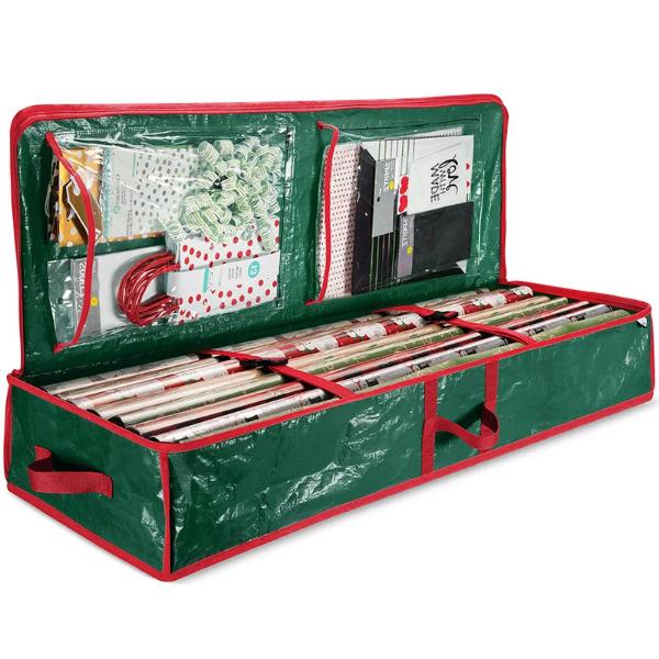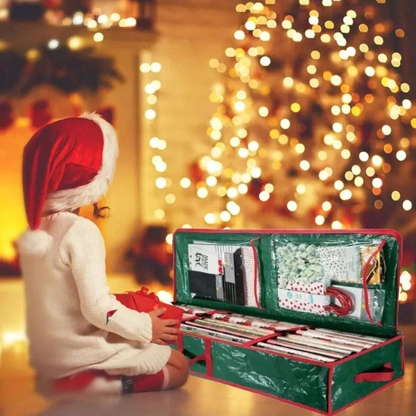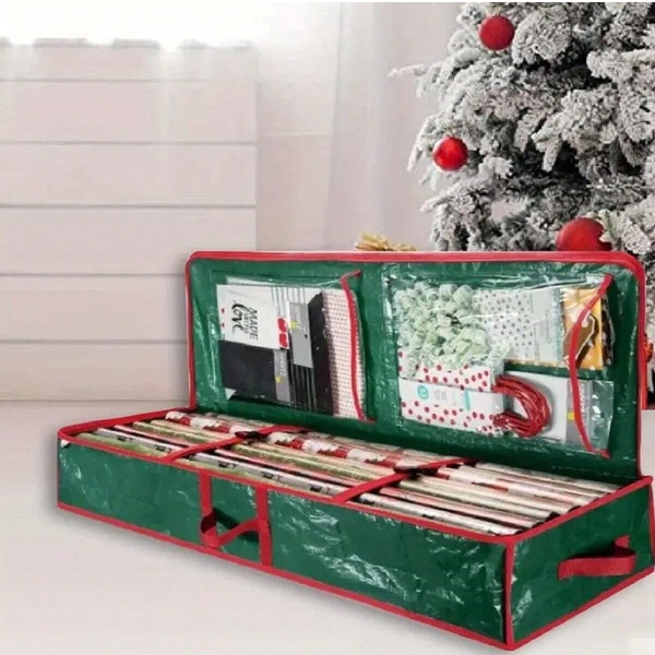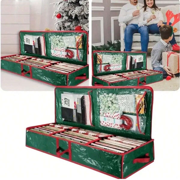 Diese Tasche bietet reichlich Platz für dein gesamtes Geschenkpapier und sorgt dafür, dass in der hektischen Weihnachtszeit alles an einem Ort aufbewahrt wird und leicht zugänglich ist.