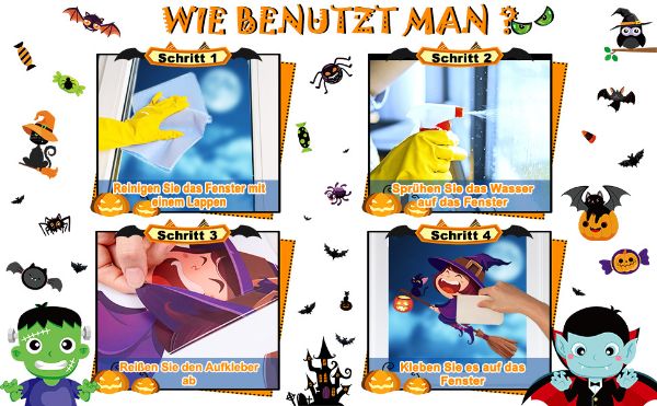 - Größe: Halloween Fensteraufkleber, bestehend aus 10 Aufklebern, je 21 x 29,5 cm