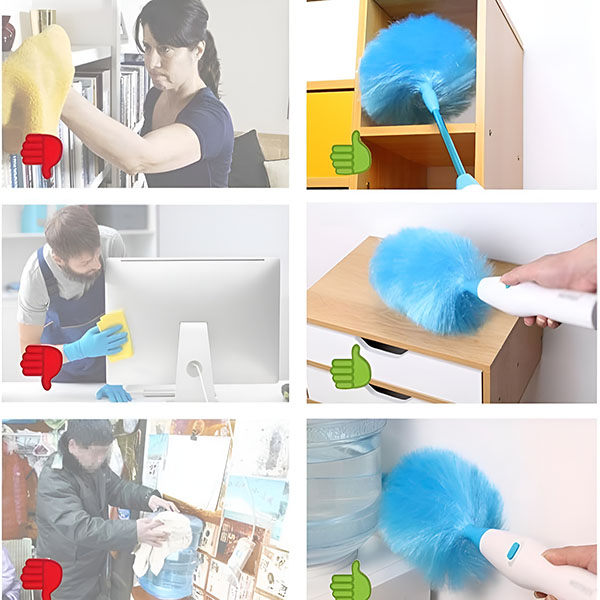 Der ultrafeine Mikrofaserkopf erfasst und hält Staub, Schmutz und Allergene sofort fest, was die Reinigung 5× effektiver macht als herkömmliche Staubwedel. Kein herumfliegender Staub mehr – nur noch makellose Oberflächen in Sekunden!