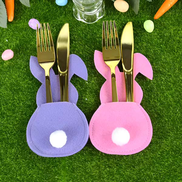 Machen Sie die Ostermahlzeiten besonders mit charmanten Hasen-Besteckhaltern, die Wärme und Freude auf Ihren Tisch bringen.