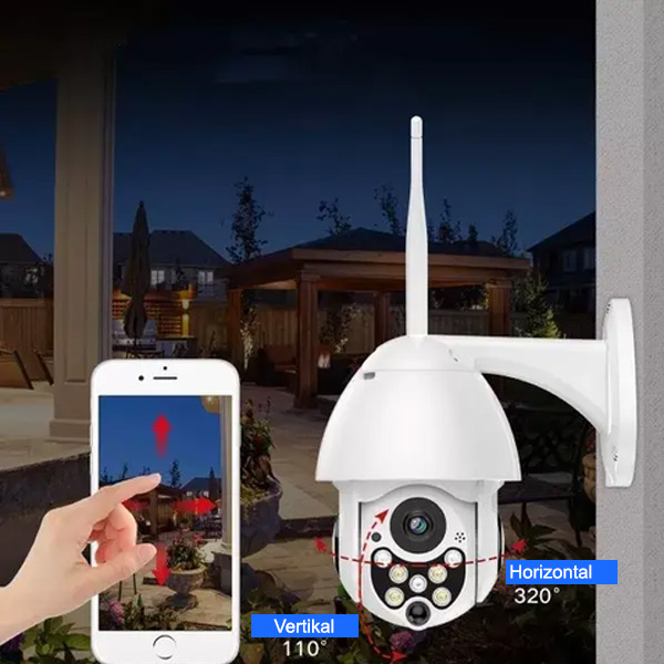 Die Kamera bietet eine horizontale Drehung um 320 ° und eine vertikale Drehung um 110 °, sodass wirklich die gesamte Umgebung abgedeckt wird. Der digitale Vierfach-Zoom erlaubt es dir, entfernte Objekte mit mehr Details zu sehen oder aber ganz nach draußen zu zoomen, um ein breiteres Sichtfeld zu erhalten.