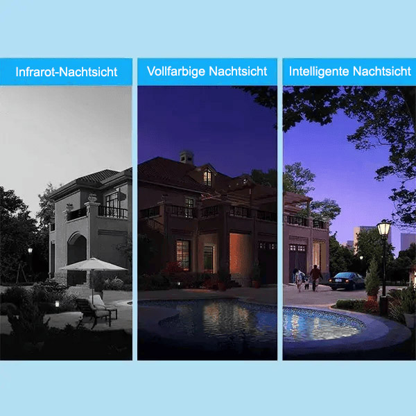 Ausgerüstet mit 3 Weitwinkel-Infrarotlichtern und 4 hellen LED-Lichtern bekommst du farbige Nachtsicht-Videos – selbst in vollkommener Dunkelheit in Vollfarbe.