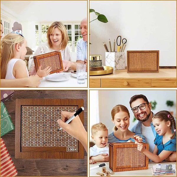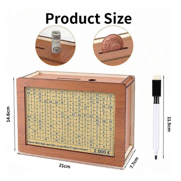 Richten Sie Ihre COINSAVE-Spardose in wenigen Minuten ein! Der mitgelieferte Marker und die Sparzettel erleichtern die Personalisierung. Es ist ein elegantes Design, das sich nahtlos in Ihr Zuhause oder Büro einfügt.