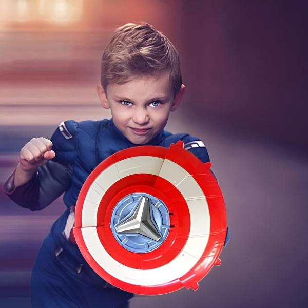 Lass dich inspirieren, ein berühmter Superheld zu werden, mit einem Schild, das nicht nur verteidigt, sondern auch weiche Schaumstoffpfeile für aufregende Action-Spiele abschießt.