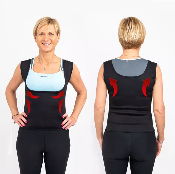 Erreichen Sie eine schlankere Silhouette mit der Thermo-Weste und den Thermo-Caprihosen. Sie strafft effektiv Ihren Bauch und kaschiert Fettpölsterchen für eine perfekte Figur.