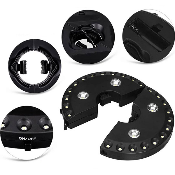 Im Gegensatz zu herkömmlichen Schirmlichtern funktioniert BRELLAGLO überall dort, wo Sie es benötigen. Klemmen Sie es an einen Schirm für Terrassenbeleuchtung oder verwenden Sie die integrierten Haken zum Aufhängen—ideal für Camping und Outdoor-Abenteuer.