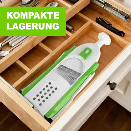 Das klappbare design spart platz und ist somit perfekt für jede küchengröße geeignet. Außerdem können sie damit schnell und sicher obst und gemüse in verschiedenen formen zubereiten!